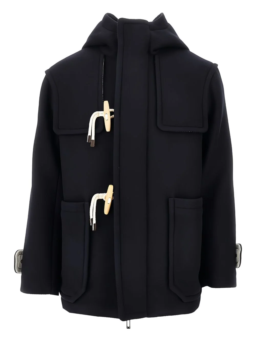 hooded toggle-fastening wool duffle coat Highlights - Navy blue - Hooded - Toggle fastening - Front pockets - Tab cuffs - Wool Imported Composition Outer: Wool 100% Lining: Polyester 100% Washing instructions Read Manufacturer Guidelines