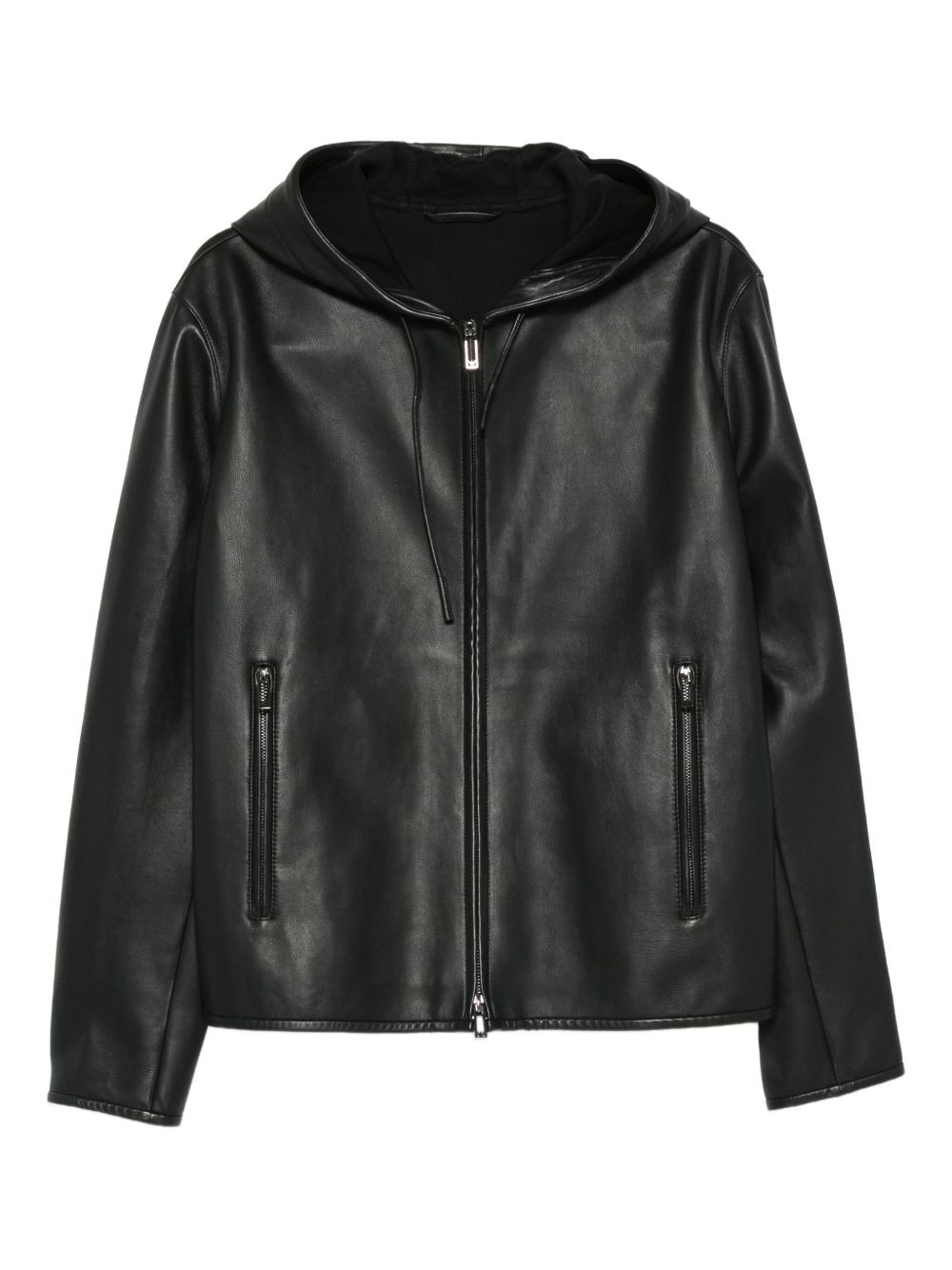hooded zip-front jacket Highlights - Black - Leather - Slouch hood - Zip front fastening - Side zip pockets - Long sleeves Imported Composition Outer: Sheepskin 100% Lining: Cotton 100% SIZE & FIT Model measurements Height 6 ft 0 in(1.84 m) Bust/Chest 37.79 in(96 cm) Hips 37 in(94 cm) Waist 31.49 in(80 cm) Washing instructions Specialist Cleaning
