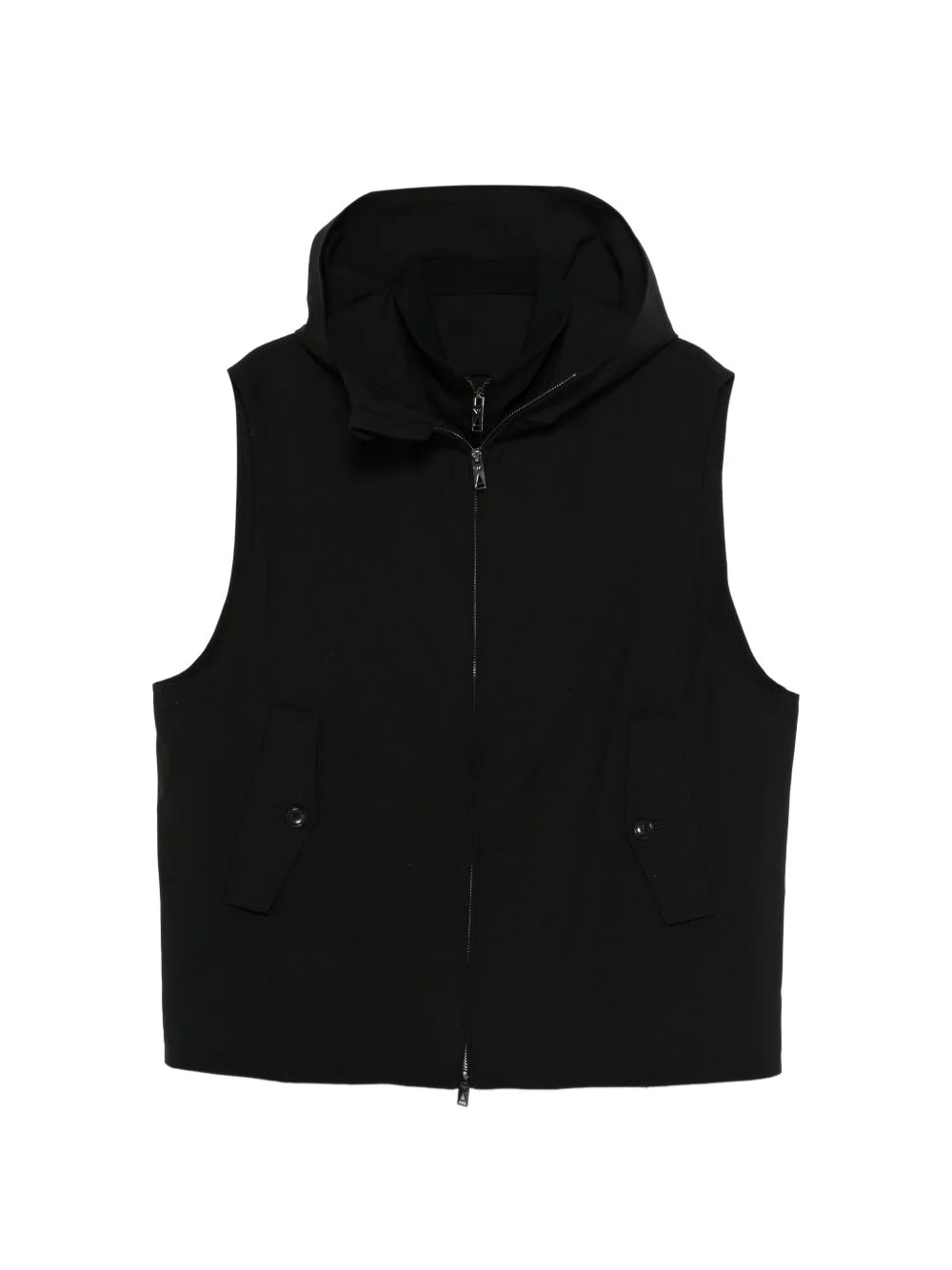 HOODED SLEEVELESS JACKET IN COMPACT STRETCH WOOL CANVAS
