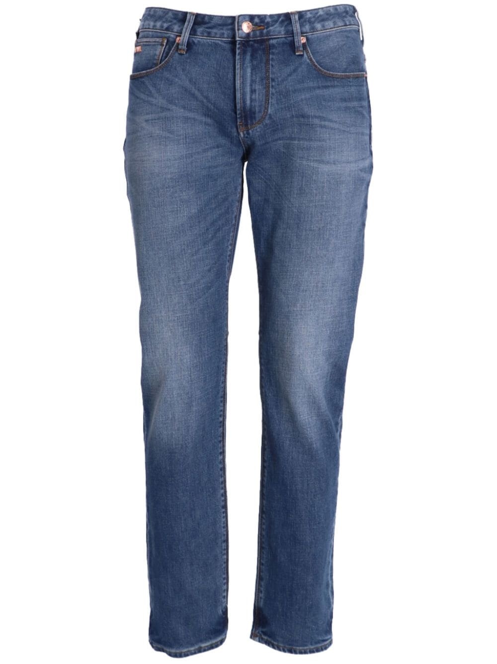 J06 slim-cut jeans Highlights - Indigo blue - Cotton blend - Washed denim - Bleached effect - Mid-rise - Slim cut - Logo patch to the rear - Whiskering effect - Belt loops - Front button and zip fastening - Classic five pockets Imported Composition Cotton 94%, Polyester 5%, Elastane 1% Washing instructions Read Manufacturer Guidelines