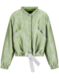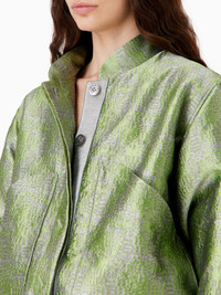 jacquard bomber jacket Highlights - Grass green/silver-tone - Full jacquard - Lurex detailing - Band collar - Concealed front button fastening - Long sleeves - Elasticated cuffs - Two side pouch pockets - Drawstring hem Imported Composition Polyester 85%, Polyamide 15%