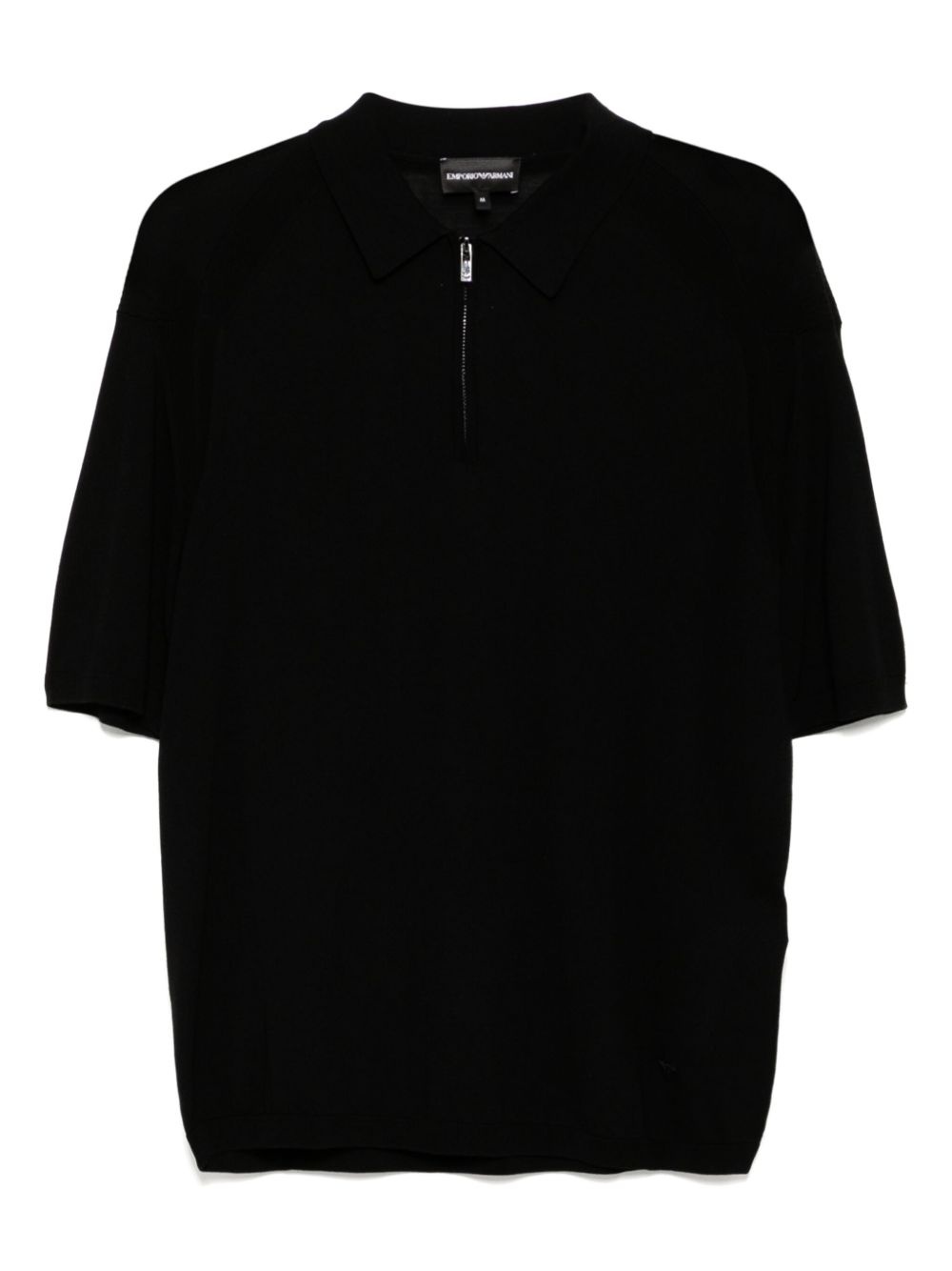 knitted polo shirt Highlights - Black - Half front zip fastening - Polo collar - Ribbed cuffs and hem Imported Composition Outer: Lyocell 70%, Cotton 25%, Silk 5% SIZE & FIT FittingInformation Designed for a regular fit, this polo shirt offers a comfortable loose fit throughout the body Made with a lightweight knit, this piece offers some stretch