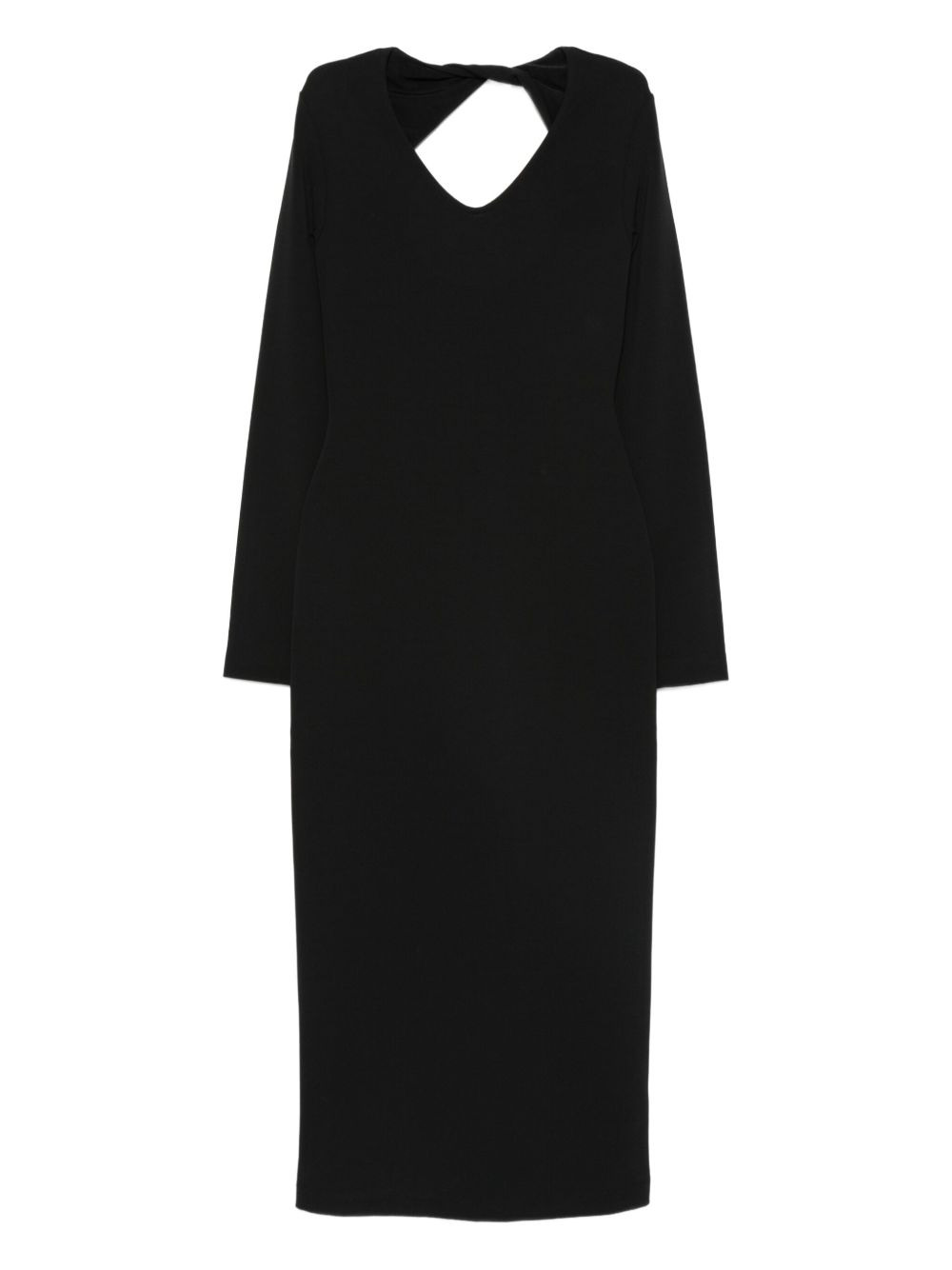 knot-back long-sleeved day dress Highlights - Black - Long sleeves - Knot detail at back - Keyhole neckline Imported Composition Outer: Viscose 73%, Polyamide 22%, Elastane 5% Lining: Polyamide 68%, Elastane 32% SIZE & FIT Model measurements Height 5 ft 9 in(1.75 m) Bust/Chest 32.67 in(83 cm) Hips 36.22 in(92 cm) Waist 24.8 in(63 cm) Washing instructions Machine Wash