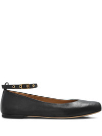 NAPPA-LEATHER SQUARE-TOED BALLERINAS WITH STRAP