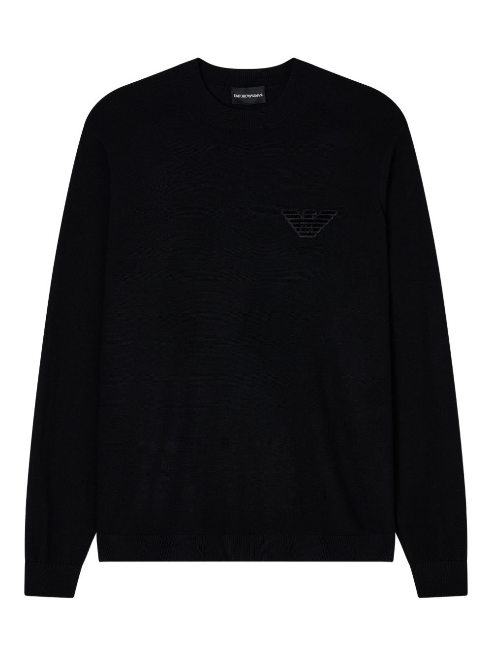 logo-embellished crew-neck sweater Highlights - Black - Crew neck - Long sleeves - Ribbed cuffs - Ribbed hem - Logo emblem Imported Composition Virgin Wool 100% Washing instructions Read Manufacturer Guidelines