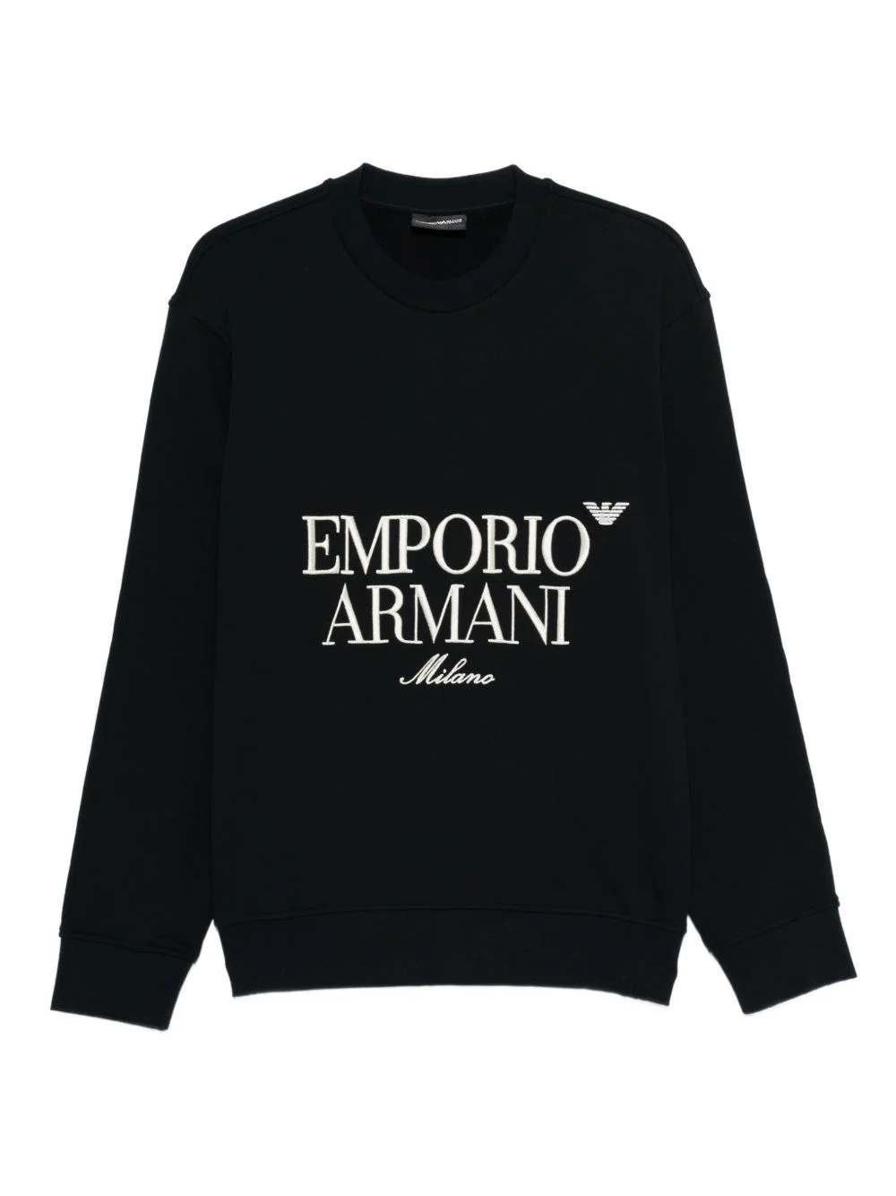 logo-embroidered crew-neck sweatshirt Highlights - Navy blue - Logo lettering - Crew neck - Long sleeves - Ribbed hem Imported Composition Cotton 96%, Elastane 4% SIZE & FIT Model measurements Height 6 ft 1 in(1.86 m) Bust/Chest 35.43 in(90 cm) Hips 35.03 in(89 cm) Waist 29.13 in(74 cm) Washing instructions Machine Wash