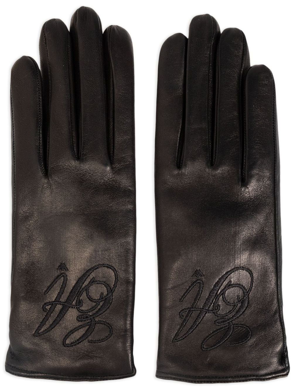 logo-embroidered gloves Highlights - Black - Leather - Embroidered logo to the front - Shearling lining - Pull-on style Made in Italy Composition Outer: Sheep Skin/Shearling 100% Lining: Wool 100%
