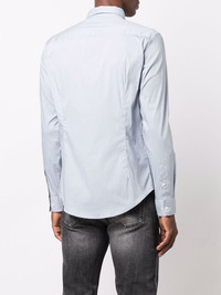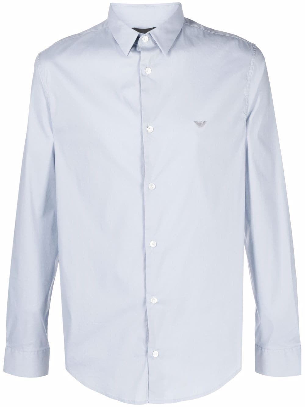 logo-embroidered long-sleeve shirt light blue cotton blend classic collar embroidered logo at the chest front button fastening long sleeves curved hem Imported Composition Cotton 76%, Polyamide 21%, Spandex/Elastane 3% SIZE & FIT Model measurements Height 6 ft 2 in(1.89 m) Bust/Chest 36.22 in(92 cm) Hips 35.82 in(91 cm) Waist 28.74 in(73 cm) FittingInformation This piece fits true to size. We recommend you get your regular size Cut for a slim fit Made with a mid-weight stretch fabric