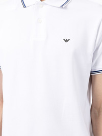 logo-embroidered polo shirt white cotton stripe trim polo collar front button placket embroidered logo short sleeves Made in Italy Composition Cotton 100% SIZE & FIT Model measurements Height 6 ft 2 in(1.87 m) Bust/Chest 35.43 in(90 cm) Hips 36.41 in(92.5 cm) Waist 27.55 in(70 cm) FittingInformation This piece fits true to size. We recommend you get your regular size Classic fit Made with a mid-weight stretch fabric