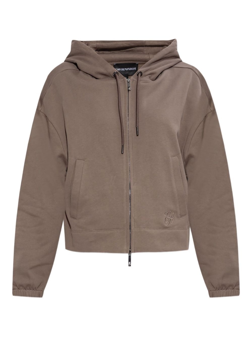 logo-embroidered zip-up hoodie Highlights - Brown - Hooded design - Zip fastening - Long sleeves - Straight hem - Embroidered logo Imported Composition Cotton 100% Washing instructions Read Manufacturer Guidelines