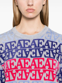 logo-flocked sweater Highlights - Duck egg blue/multicolour - Knitted construction - All-over flocked logo - Chenille trim - Ribbed trim - Crew neck - Long sleeves - Straight hem Imported Composition Polyamide 52%, Viscose 45%, Elastane 3% Outer: Viscose 66%, Polyamide 22%, Polyester 13% SIZE & FIT Model measurements Height 5 ft 9 in(1.75 m) Bust/Chest 31.88 in(81 cm) Hips 34.64 in(88 cm) Waist 24.01 in(61 cm) FittingInformation Designed for a relaxed fit, this piece allows for comfort and movement when worn Made with a midweight knit, this piece offers some stretch