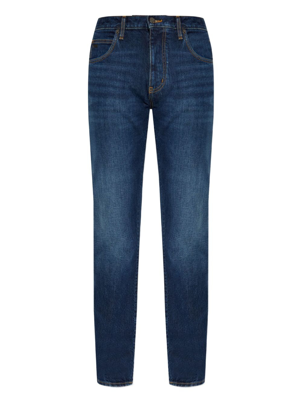 logo-motif jeans Highlights - Dark blue - Five-pocket styling - Button fly - Logo patch - Belt loops Imported Composition Cotton 99%, Elastane 1% Washing instructions Read Manufacturer Guidelines