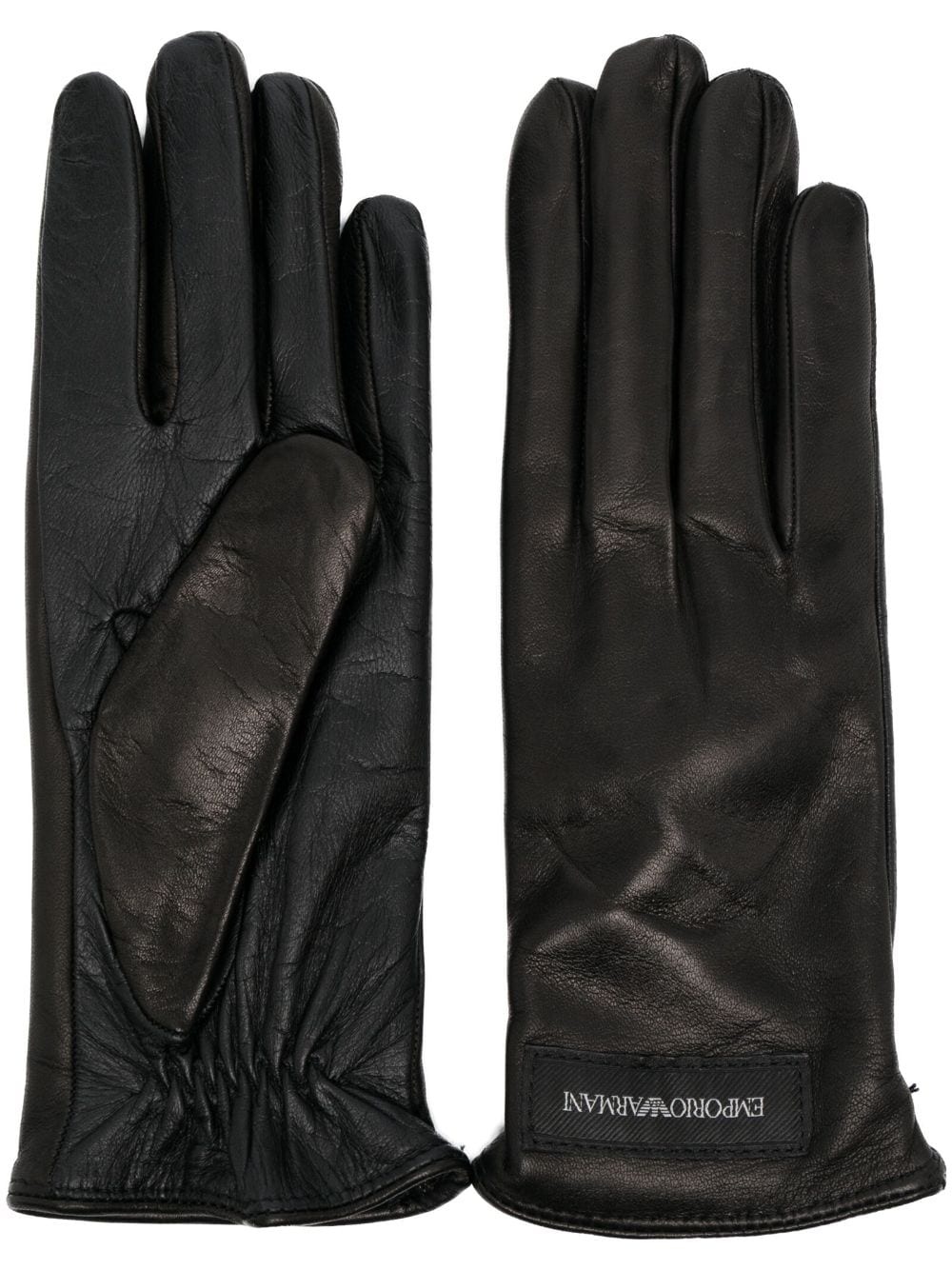 logo-patch leather gloves Highlights - Black - Calf leather/wool - Logo patch to the front - Pull-on style - Elasticated cuffs Made in Italy Composition Outer: Calf Leather 100% Lining: Wool 100% Washing instructions Specialist Cleaning