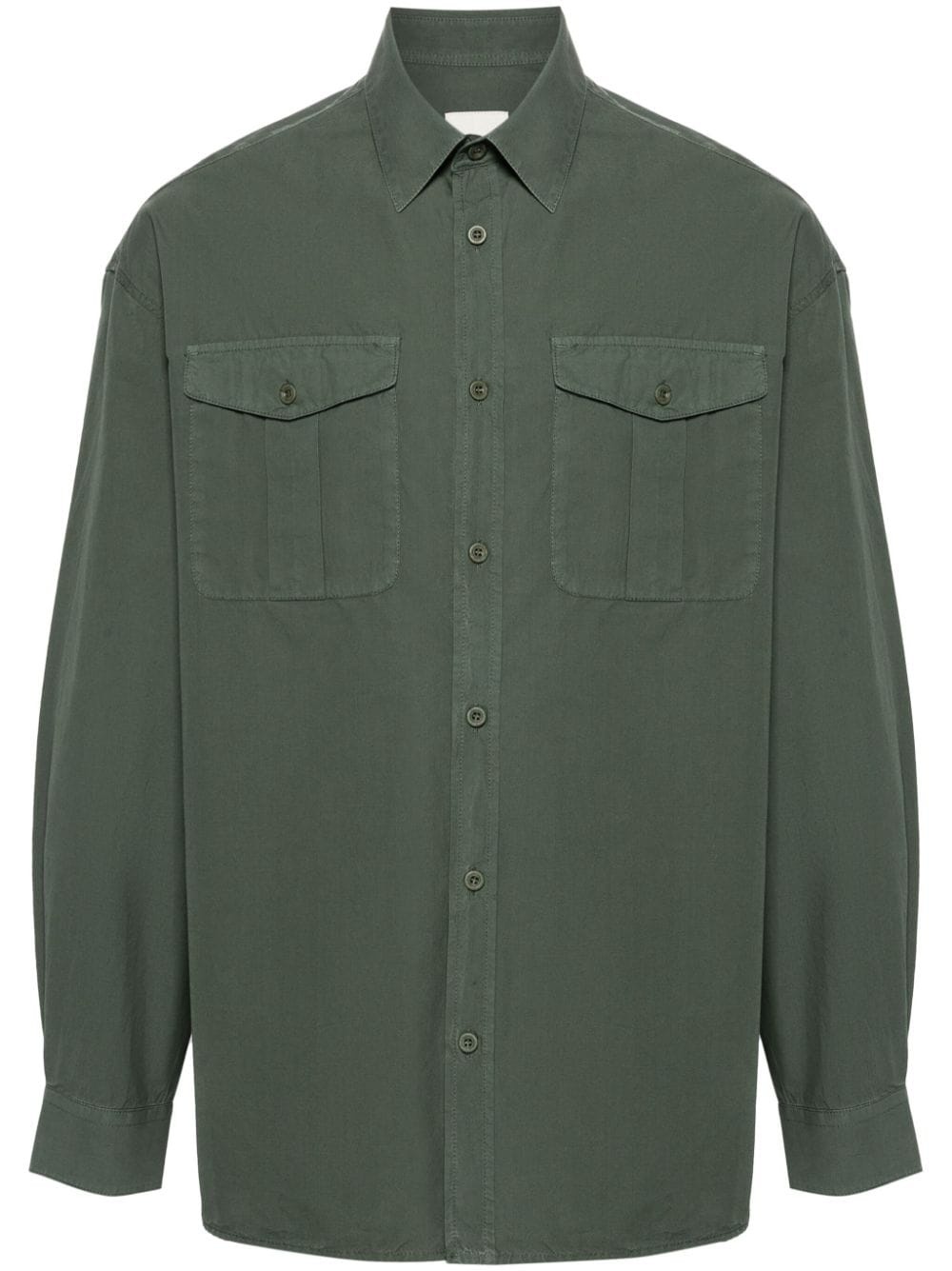 logo-patch organic cotton shirt Highlights - Emerald green - Organic cotton - Poplin texture - Logo patch to the front - Box-pleat detail - Classic collar - Front button fastening - Long sleeves with buttoned cuffs - Two chest flap pockets - Straight hem Imported Composition Organic Cotton 100% SIZE & FIT Model measurements Height 6 ft 2 in(1.87 m) Bust/Chest 36.22 in(92 cm) Hips 37 in(94 cm) Waist 27.95 in(71 cm) FittingInformation Designed to be unstructured, offering a loose fit throughout Made from a midweight non-stretch fabric This piece fits true to size – take your usual size