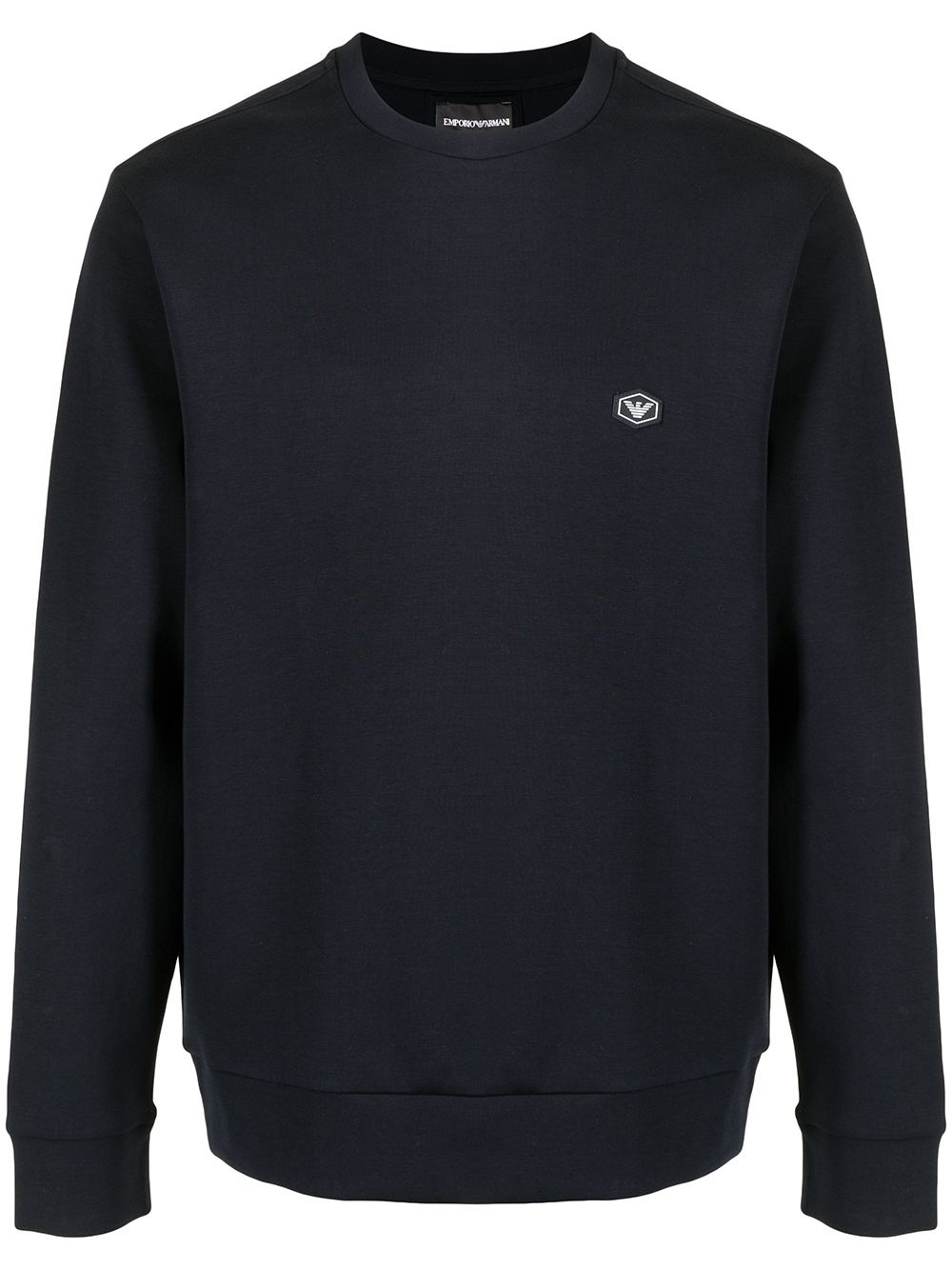 logo-patch sweatshirt Emporio Armani specialises in classic, understated designs like this sweatshirt. The crew-neck silhouette depicts the brand's logo in small patch form on the chest, offering a subtle branded touch. Imported Composition Outer: Cotton 76%, Polyester 24% SIZE & FIT Model measurements Height 6 ft 2 in(1.87 m) Bust/Chest 35.43 in(90 cm) Hips 36.41 in(92.5 cm) Waist 27.55 in(70 cm) FittingInformation This piece fits true to size. We recommend you get your regular size Cut for a loose fit Made with a mid-weight stretch fabric