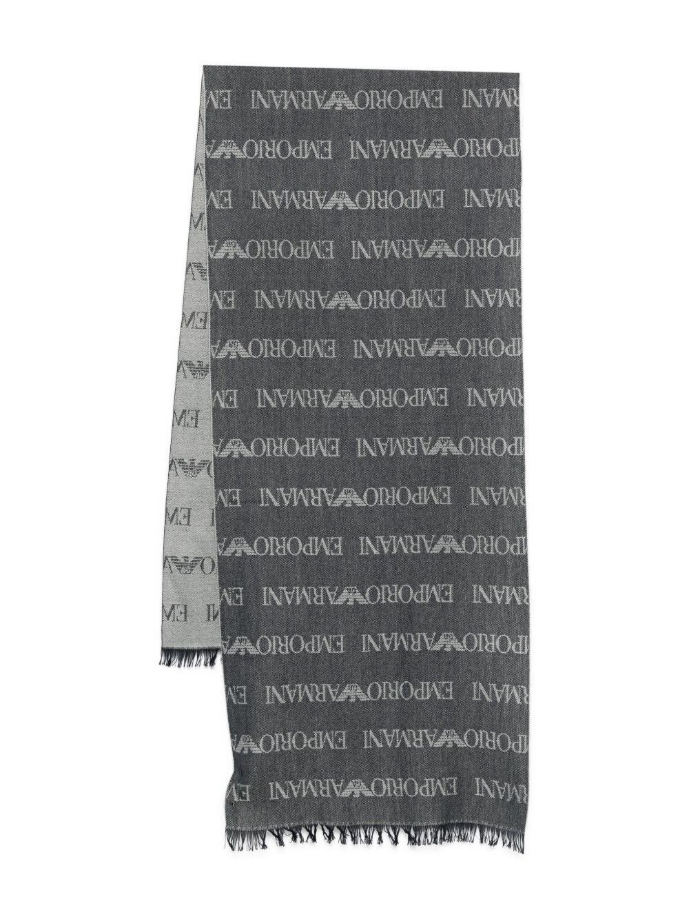 VIRGIN-WOOL BLEND SCARF WITH JACQUARD LOGO LETTERING AND FRINGES