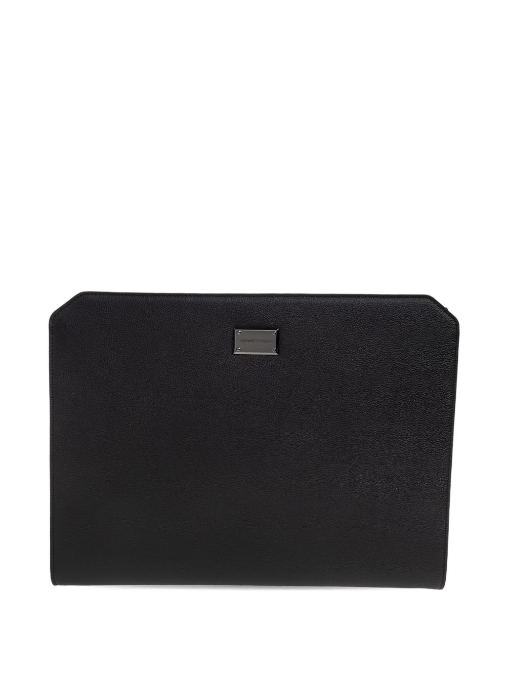 logo-plaque leather clutch bag Highlights - Black - Leather - Zip fastening - Internal pocket - Logo plaque - Flap closure Imported Composition Outer: Bovine Leather 100% Lining: Polyester 100% SIZE & FIT Measurement HEIGHT 11.02 in(28 cm) WIDTH 14.17 in(36 cm)
