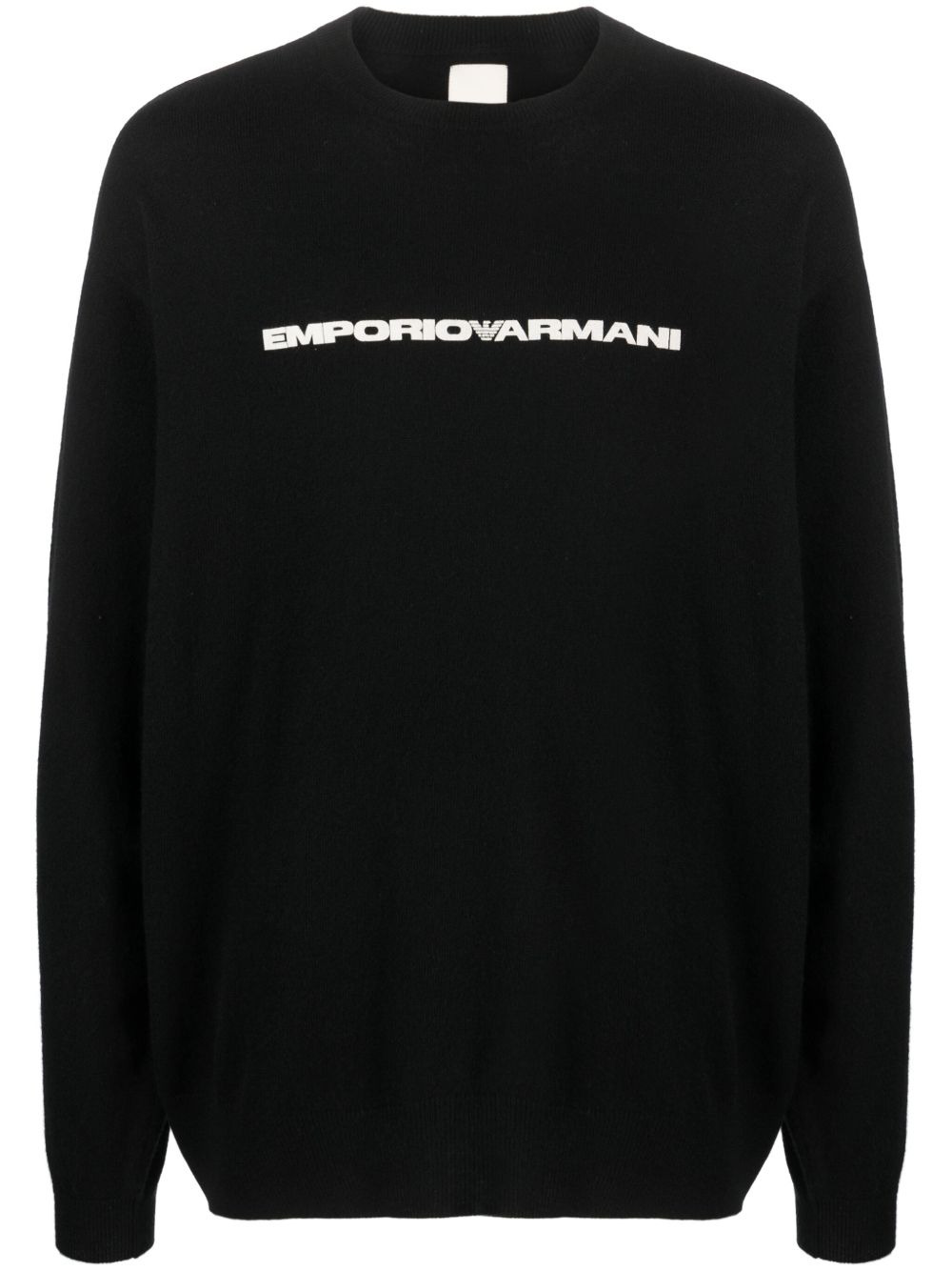 logo-print crew-neck jumper Highlights - Black/white - Knitted construction - Logo print to the front - Crew neck - Drop shoulder - Long sleeves - Ribbed cuffs and hem - Straight hem Imported Composition Wool 40%, Viscose 25%, Polyamide 25%, Cashmere 10% SIZE & FIT Model measurements Height 6 ft 1 in(1.86 m) Bust/Chest 37.4 in(95 cm) Hips 34.64 in(88 cm) Waist 29.13 in(74 cm) FittingInformation Designed to be unstructured, offering a loose fit throughout Made with a midweight knit, this piece offers some stretch This piece fits true to size – take your usual size Washing instructions Hand Wash