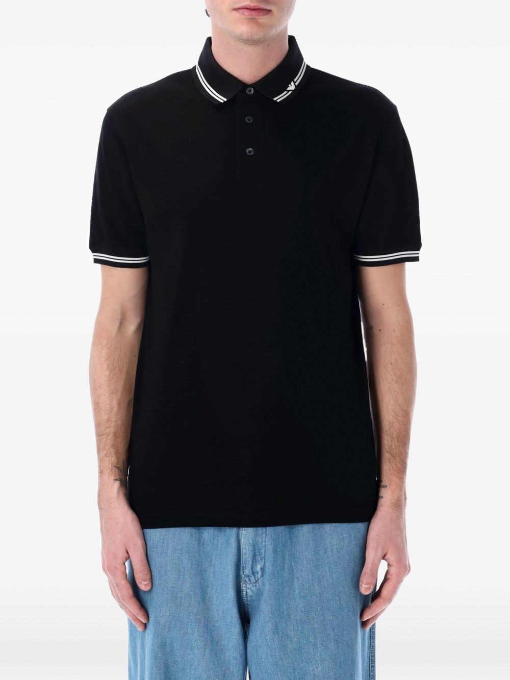 logo-print polo shirt Highlights - Black/white - Stripe trim - Polo collar - Short sleeves Imported Composition Cotton 100%