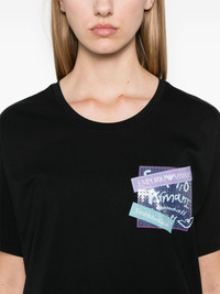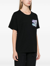 logo-print T-shirt Highlights - Black - Organic cotton - Lightweight jersey - Sequin logo print at the chest - Crew neck - Drop shoulder - Short sleeves - Straight hem Imported Composition Organic Cotton 100% SIZE & FIT Model measurements Height 5 ft 9 in(1.75 m) Bust/Chest 31.88 in(81 cm) Hips 34.64 in(88 cm) Waist 24.01 in(61 cm) FittingInformation Designed to be unstructured, offering a loose fit throughout Made from a midweight non-stretch fabric, this piece offers minimal elasticity when worn