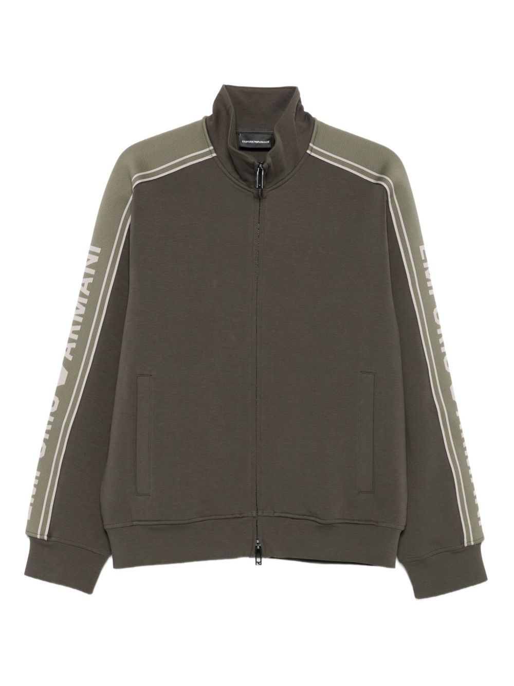 logo-tape zip-up sweatshirt Highlights - Olive green - Zip fastening - Ribbed cuffs - High neck - Logo tape - Long sleeves Imported Composition Cotton 76%, Polyester 18%, Elastane 6% SIZE & FIT Model measurements Height 6 ft 2 in(1.87 m) Bust/Chest 36.41 in(92.5 cm) Hips 37 in(94 cm) Waist 29.52 in(75 cm)