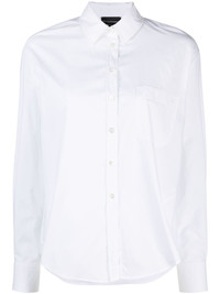 long-sleeve cotton shirt Highlights - Optical white - Cotton - Classic collar - Front button fastening - Chest patch pocket - Long sleeves - Curved hem Imported Composition Cotton 100% SIZE & FIT Model measurements Height 5 ft 10 in(1.79 m) Bust/Chest 31.49 in(80 cm) Hips 35.03 in(89 cm) Waist 23.62 in(60 cm)