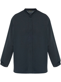 long-sleeve shirt Highlights - Midnight blue - Concealed front button fastening - Buttoned-cuff sleeves - Band collar Imported Composition Polyester 100%