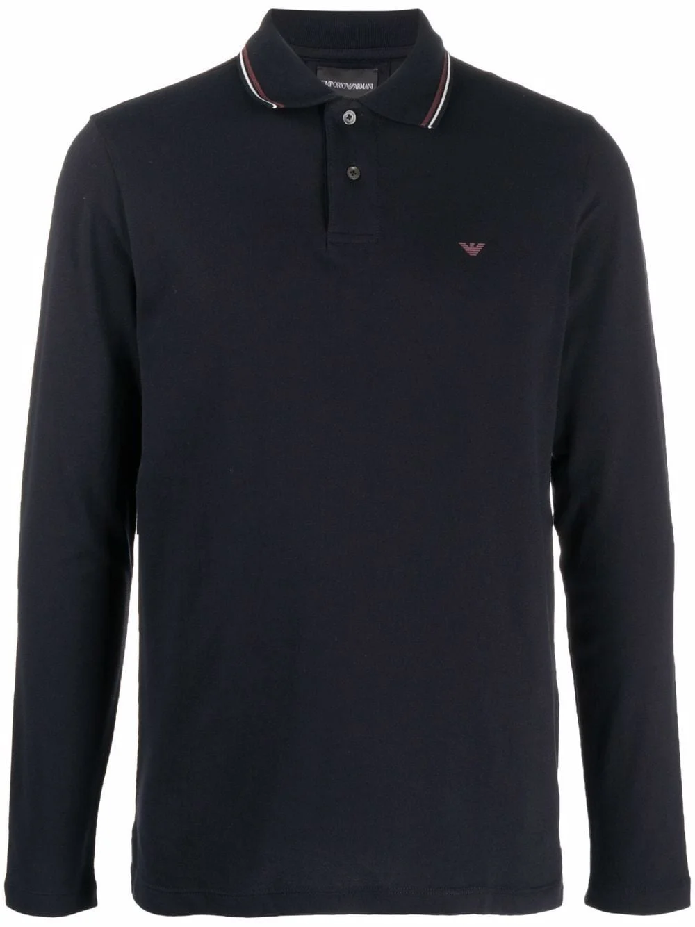 Long-sleeved stretch piqué polo shirt with micro eagle embroidery