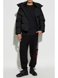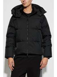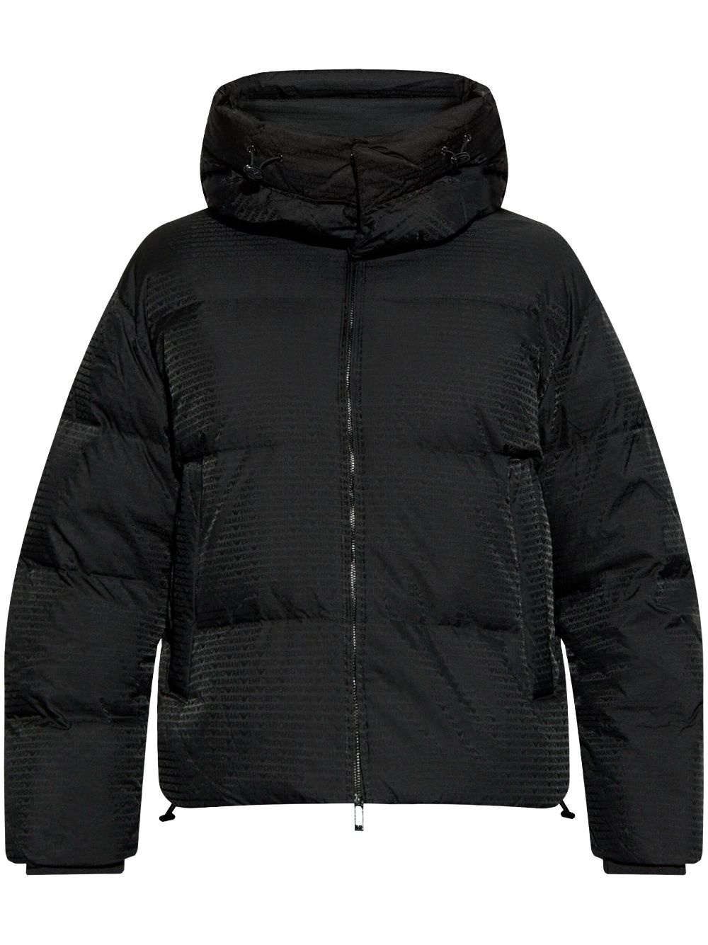logo-lettering hooded down jacket Highlights - Black - Down-feather filling - Monogram pattern - Front two-way zip fastening - High neck - Slouchy drawstring hood - Long sleeves - Elasticated cuffs - Two side welt pockets - Drawstring hem Imported Composition Outer: Polyamide 100% Lining: Polyester 100%, Down 80%, Feather 20% SIZE & FIT FittingInformation Designed for a regular fit, allowing for a comfortably loose fit throughout the body The internal drawstring at the hem allows for fitted preferences Made from a padded non-stretch fabric, giving it no natural elasticity