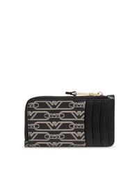 Zip-around card holder with all-over monogram print