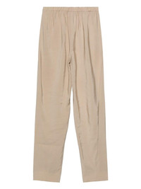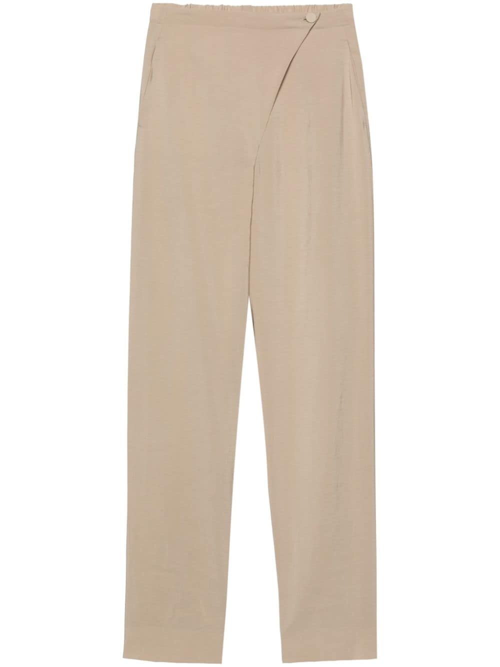 overlapping-panel tapered trousers Highlights - Khaki beige - Modal blend - Front overlapping panel - Two side inset pockets - Full-length - Rear elasticated waistband - Tapered leg - Slim cut - Fabric-covered buttons - Front button fastening Made in Italy Composition Modal 85%, Polyester 15%