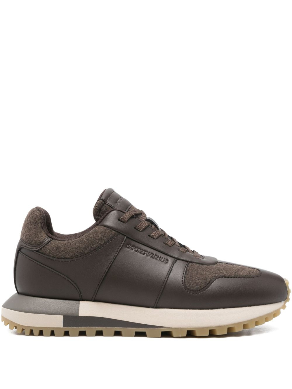 panelled sneakers Highlights - Brown - Rubber sole - Lace-up fastening Imported Composition Outer: Wool 100%, Calf Leather 100% Lining: Fabric 100% Sole: Rubber 100%