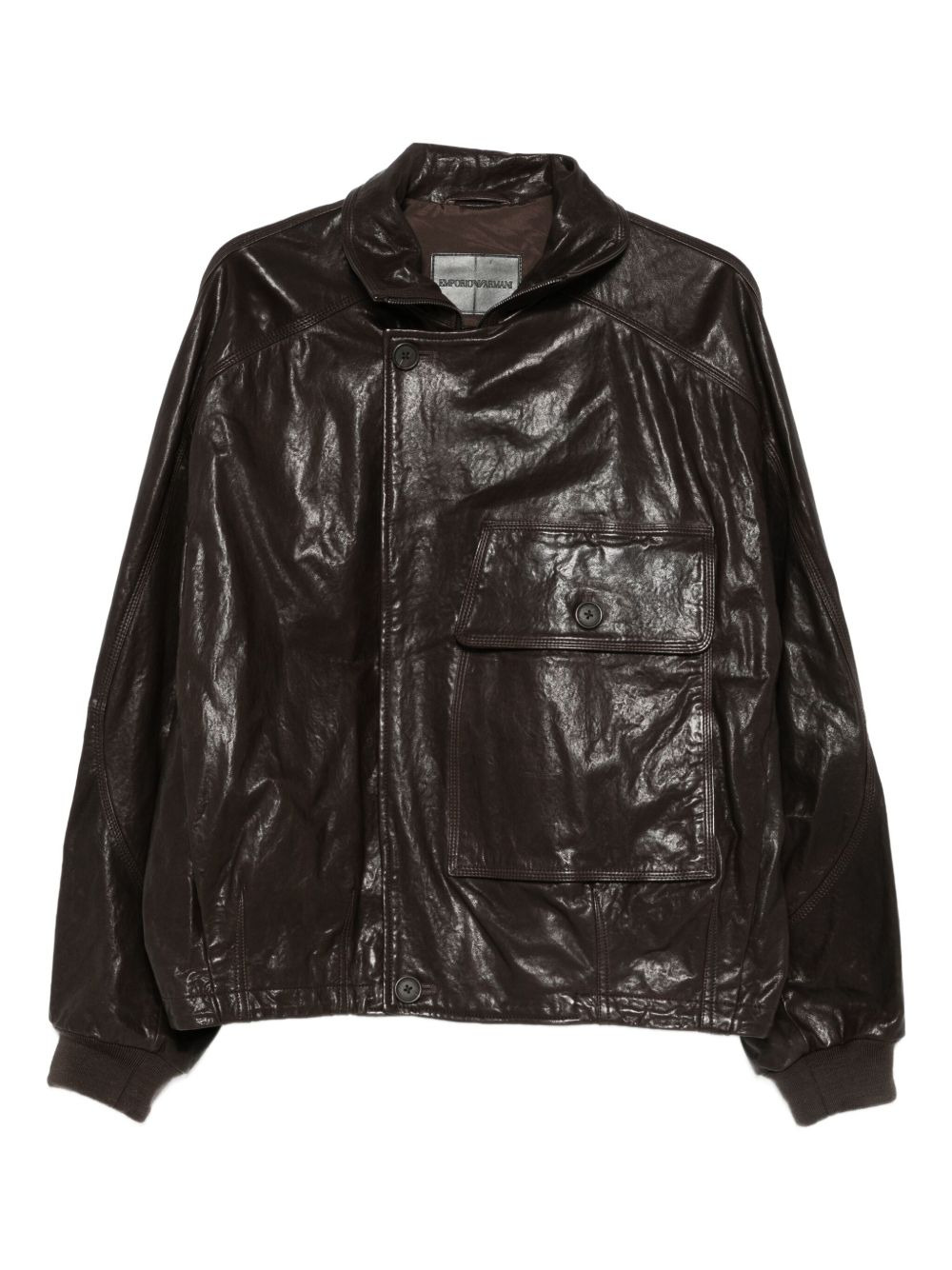 patch-pocket leather jacket Highlights - Brown - Button fastening - Chest pocket - Classic collar - Long sleeves - Ribbed cuffs Imported Composition Sheepskin 100% SIZE & FIT Model measurements Height 6 ft 2 in(1.88 m) Bust/Chest 36.61 in(93 cm) Hips 35.82 in(91 cm) Waist 27.95 in(71 cm) Washing instructions Read Manufacturer Guidelines