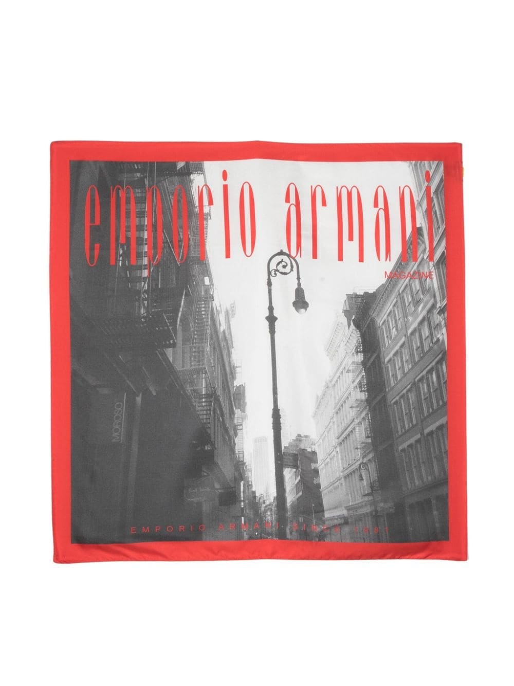 photograph-print silk scarf Highlights - Smoke grey/scarlet red - Silk - Photograph print - Logo print to the front - Contrasting border - Finished edge - Square shape Made in Italy Composition Silk 100% SIZE & FIT Measurement LENGTH 35.03 in(89 cm) WIDTH 35.03 in(89 cm)