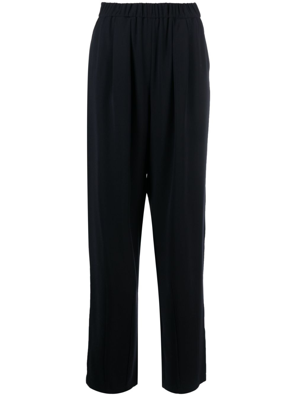 pleat-detail high-waist trousers Highlights - Navy blue - Pleat detailing - Elasticated waistband - Concealed side zip fastening - Two side slit pockets - Rear welt pocket Imported Composition Lining: Polyester 100% Outer: Polyester 100% SIZE & FIT Model measurements Height 5 ft 10 in(1.77 m) Bust/Chest 32.28 in(82 cm) Hips 36.22 in(92 cm) Waist 24.4 in(62 cm) FittingInformation Designed for a tapered fit, these trousers allow for a close fit at the waist and a loose unrestricted fit over the leg with a closer fit towards the ankle The partially elasticated waistband offers increased movement and comfort at the waist Made from a midweight non-stretch fabric, this piece offers minimal elasticity when worn This piece fits true to size – take your usual size Washing instructions Dry Clean Only
