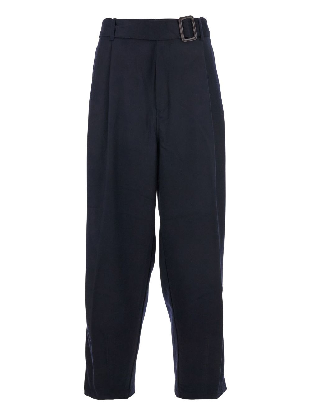 pleated belted trousers Highlights - Blue - Pleated design - Buckle fastening - Straight leg Imported Composition Virgin Wool 92%, Cashmere 8% Washing instructions Read Manufacturer Guidelines