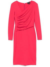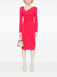 pleated mini dress Highlights - Raspberry pink - Jersey texture - Concealed rear zip fastening - Asymmetric neck - Shoulder pads - Long sleeves - Pleat detailing - Gathered detailing - Unlined - Straight hem - Knee-length Imported Composition Lining: Polyamide 100% Outer: Viscose 77%, Polyamide 17%, Elastane 6% SIZE & FIT Model measurements Height 5 ft 9 in(1.75 m) Bust/Chest 34.64 in(88 cm) Hips 36.61 in(93 cm) Waist 26.37 in(67 cm) FittingInformation Designed for a close fit throughout The internal shoulder pads offer a structured shape Made from a midweight stretch fabric, this piece offers elasticity and flexibility when worn