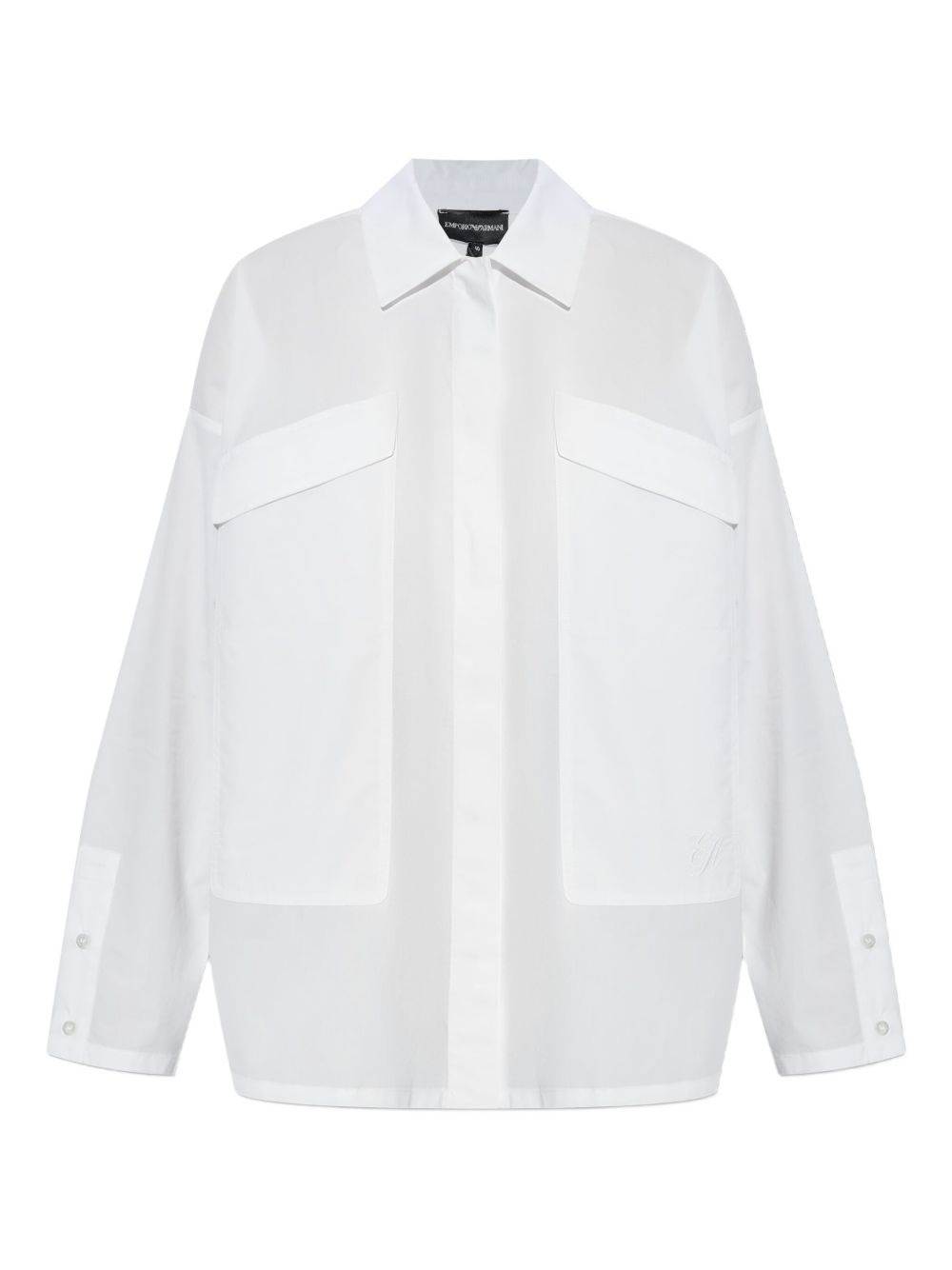 pocketed collared shirt Highlights - White - Collared neckline - Long sleeves - Concealed button fastening - Chest pockets Imported Composition Cotton 100% Washing instructions Read Manufacturer Guidelines