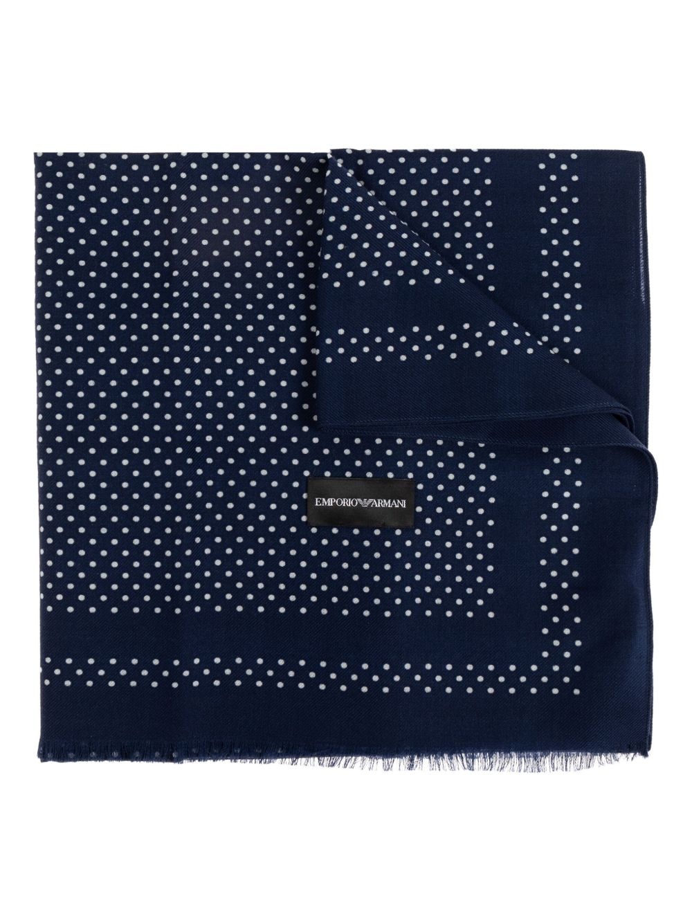 polka-dot wool scarf Highlights - Navy blue - Polka dot pattern - Fringed edges - Wool Made in Italy Composition Virgin Wool 100% SIZE & FIT Measurement LENGTH 69.29 in(176 cm) WIDTH 61.41 in(156 cm)