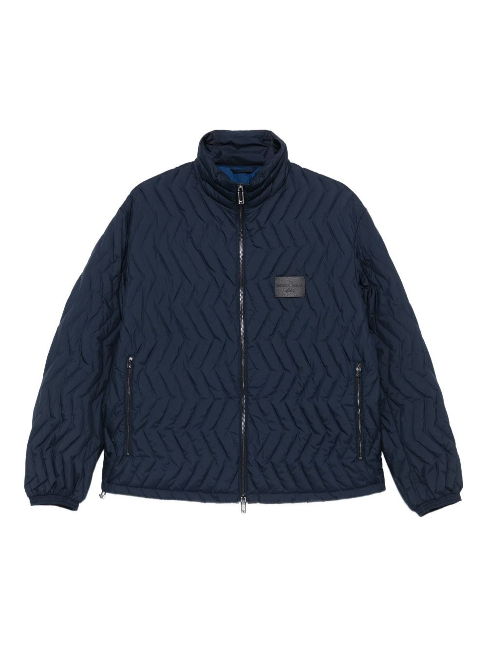 quilted chevron-pattern jacket Highlights - Navy blue - Chevron-pattern quilting - Zip front fastening - High neck - Long sleeves - Zipped pockets Imported Composition Outer: Polyester 100%, Goat Skin 100% Lining: Polyester 100%, Duck Down 80%, Duck Feathers 20% SIZE & FIT Model measurements Height 6 ft 2 in(1.87 m) Bust/Chest 36.41 in(92.5 cm) Hips 37 in(94 cm) Waist 29.52 in(75 cm) Washing instructions Read Manufacturer Guidelines