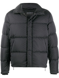jacquard quilted puffer jacket Highlights - Black - Quilted - monogram print - two front welt pockets - high neck - long sleeves - concealed front fastening Made in Italy Composition Lining: Goose Down 100%, Polyamide 100% Outer: Polyester 100% SIZE & FIT Model measurements Height 6 ft 2 in(1.88 m) Bust/Chest 36.61 in(93 cm) Hips 35.82 in(91 cm) Waist 27.95 in(71 cm) FittingInformation This piece fits true to size. We recommend you get your regular size Cut for a loose fit Made with a mid-weight non-stretch fabric
