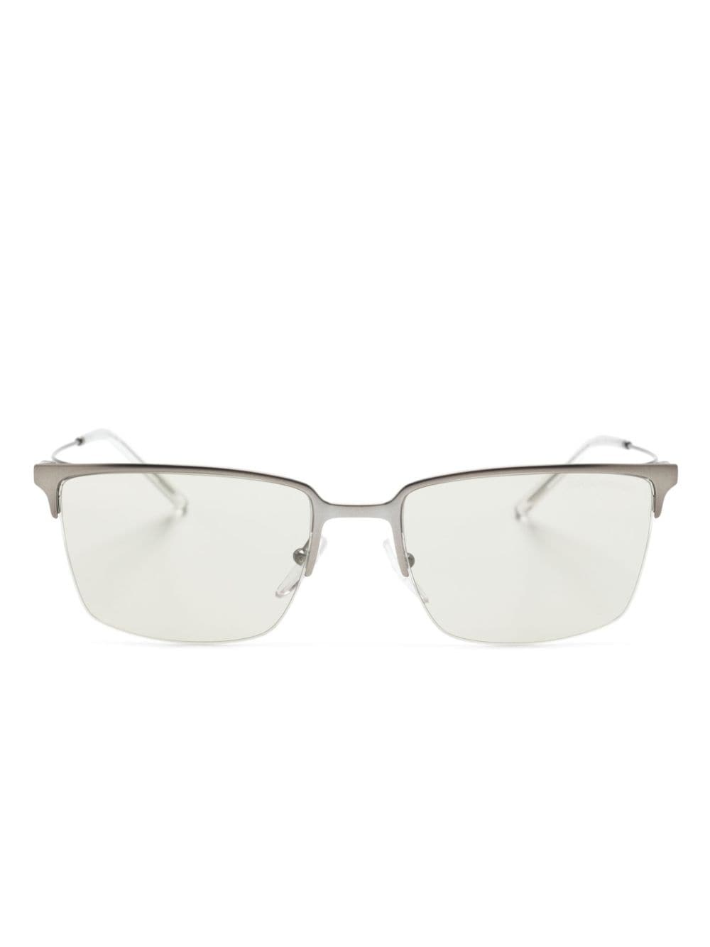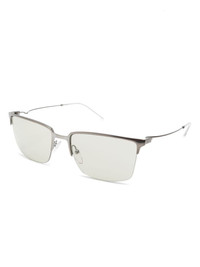 rectangle-frame sunglasses Highlights - Gunmetal grey - Metal - Matte effect - Rectangle frame - Partial rimless - Light brown tinted lenses - Logo lens decal - Nose pads - Logo-engraved arm - Sculpted arms with curved tips - These glasses come with a protective case. Imported Composition Acetate 100%, Metal 100%, Acrylic 100% SIZE & FIT Measurement Arm Length 5.7 in(14.5 cm) Bridge Width 0.74 in(1.9 cm) Lens Diameter 2.28 in(5.8 cm) Total Width 5.9 in(15 cm)