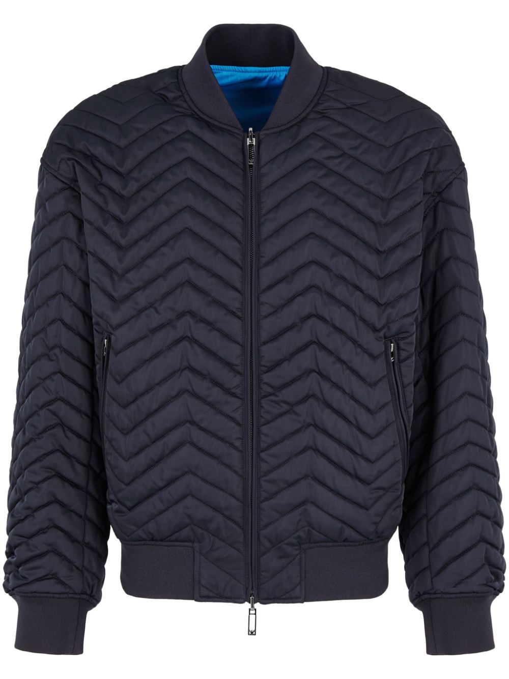 reversible bomber jacket Highlights - Navy blue/azure blue - Padded design - Reversible - Chevron quilting - Baseball collar - Two-way zip fastening - Two side zip-fastening pockets - Long sleeves - Elasticated cuffs - Elasticated hem Imported Composition Polyester 100% SIZE & FIT FittingInformation Designed for a regular fit, allowing for a comfortably loose fit throughout the body The ribbed hem offers a close, comfortable fit Made from a quilted non-stretch fabric, giving it no natural elasticity