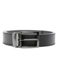 reversible leather belt Highlights - Black/dark green - Calf leather - Grained texture - Reversible - Gunmetal-tone hardware - Logo-engraved buckle fastening - Adjustable fit - Punched holes Made in Italy Composition Calf Leather 100% SIZE & FIT Measurement Minimum Length 45.27 in(115 cm) WIDTH 1.37 in(3.5 cm) TOTAL LENGTH 49.21 in(125 cm)