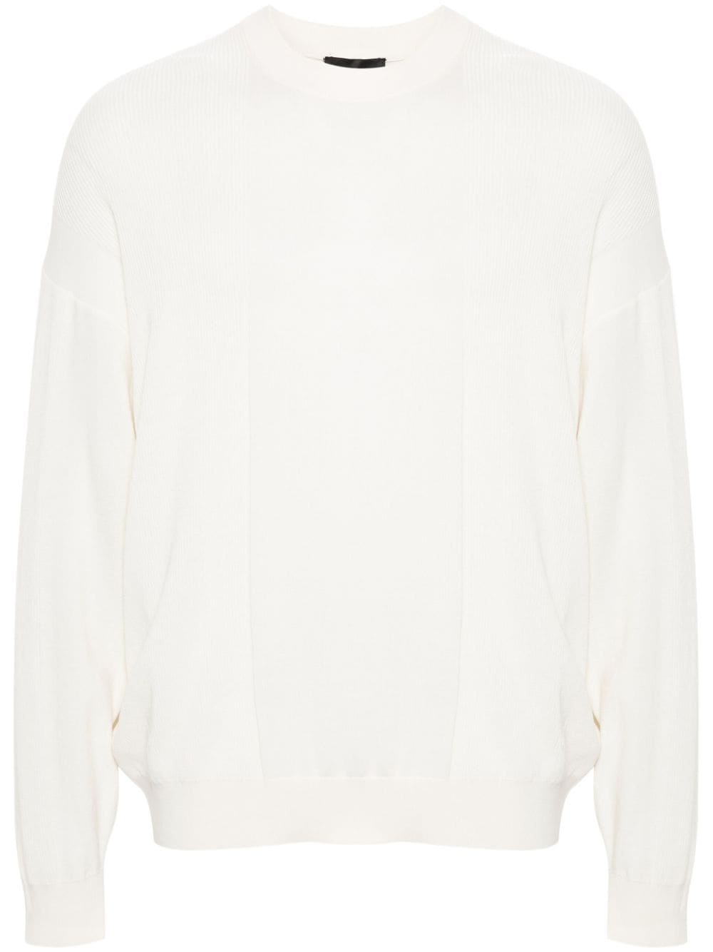 ribbed cotton jumper Highlights - Milk white - Cotton - Knitted construction - Panelled design - Ribbed knit panel - Ribbed crew neck - Long sleeves - Ribbed cuffs and hem - Pull-on style Imported Composition Cotton 100% SIZE & FIT Model measurements Height 6 ft 1 in(1.85 m) Bust/Chest 36.22 in(92 cm) Hips 36.22 in(92 cm) Waist 27.55 in(70 cm) FittingInformation Designed to be unstructured, offering a loose fit throughout The ribbed hem offers a close, comfortable fit Made with a midweight knit, this piece offers some stretch This piece fits true to size – take your usual size
