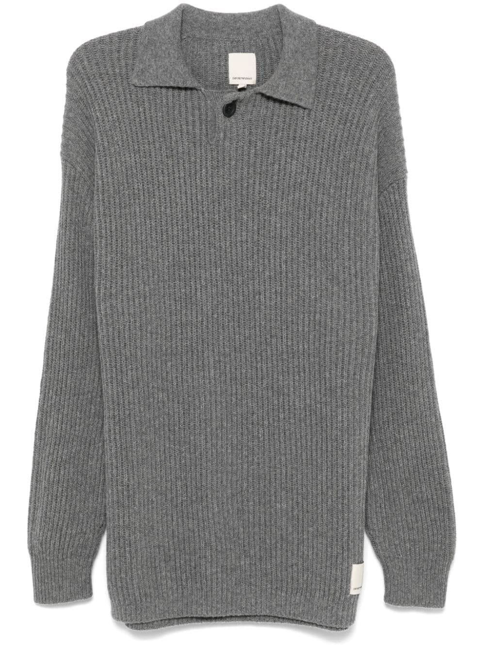 ribbed-knit polo shirt Highlights - Medium grey - Wool blend - Ribbed knit - Single front button fastening - Polo collar - Long sleeves - Logo patch to the front - Straight hem Imported Composition Wool 80%, Polyamide 20% SIZE & FIT Model measurements Height 6 ft 2 in(1.87 m) Bust/Chest 37.79 in(96 cm) Hips 37.79 in(96 cm) Waist 30.31 in(77 cm) FittingInformation Designed for a loose fit, this polo shirt offers additional room throughout Made with a midweight knit, this piece offers some stretch