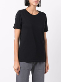 round-neck cotton T-shirt black cotton round neck short sleeves straight hem Imported Composition Cotton 100% SIZE & FIT Model measurements Height 5 ft 10 in(1.78 m) Bust/Chest 33.07 in(84 cm) Hips 35.82 in(91 cm) Waist 25.98 in(66 cm) FittingInformation This piece fits true to size. We recommend you get your regular size Cut for a slim fit Made with a mid-weight fabric