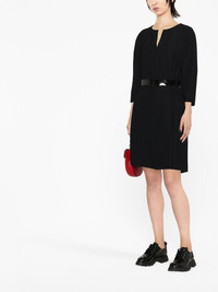 round-neck long-sleeve dress Emporio Armani highlights the brand's signature refined design style on this dress through the use of a timeless tonal colourway, whilst an understated belt detail adds an innovative twist. Imported Composition Outer: Polyurethane 100%, Polyester 100% Lining: Polyester 100% SIZE & FIT Model measurements Height 5 ft 11 in(1.8 m) Bust/Chest 31.49 in(80 cm) Hips 35.43 in(90 cm) Waist 25.19 in(64 cm) FittingInformation This piece fits true to size. We recommend you get your regular size Cut for a loose fit. Comes with an adjustable belt for a flexible fit at the waist Made with a mid-weight non-stretch fabric