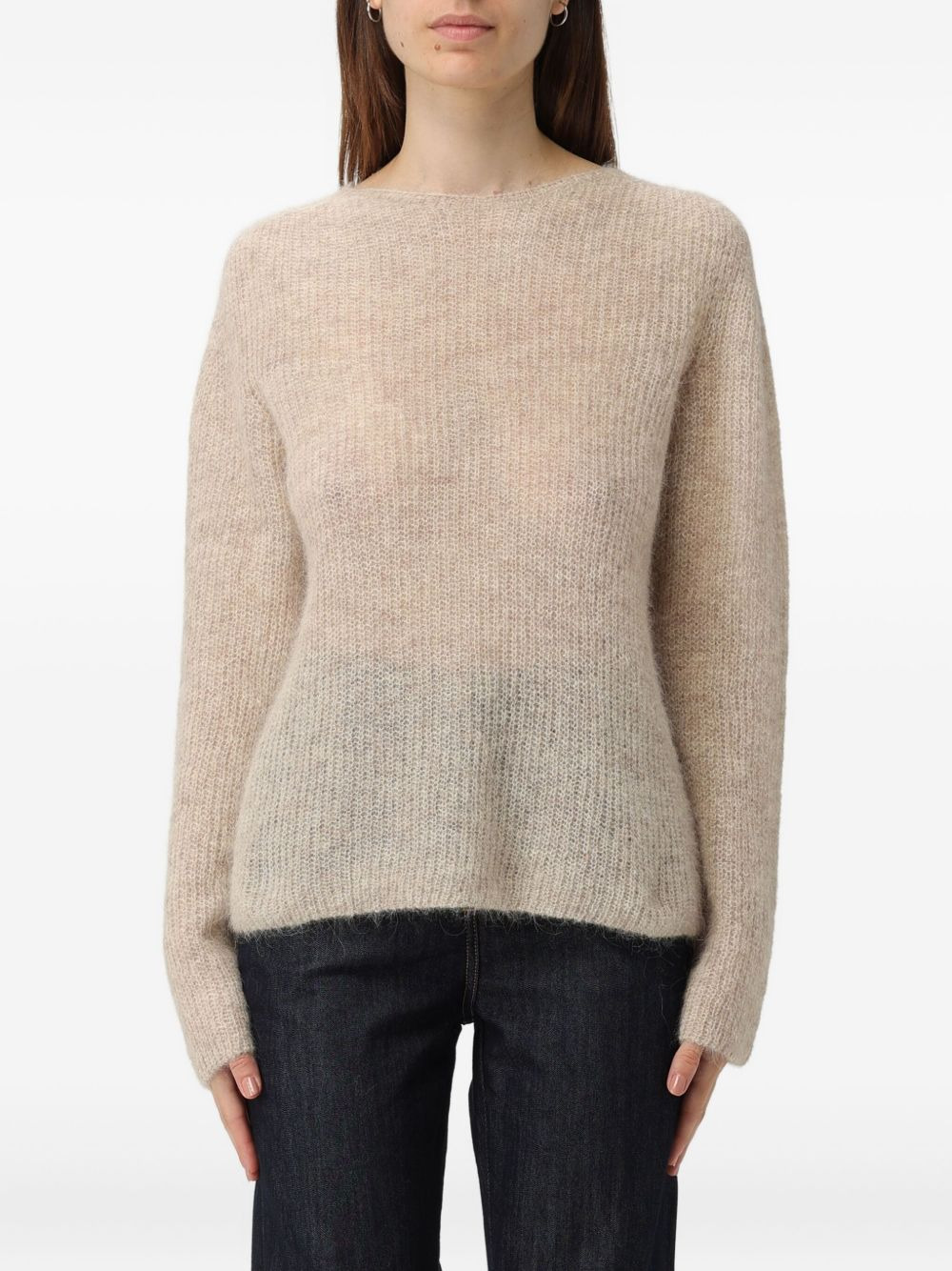 round-neck sweater Highlights - Beige - Round neck - Long sleeves - Ribbed knit Made in Italy Composition Alpaca 70%, Polyamide 30% Washing instructions Read Manufacturer Guidelines