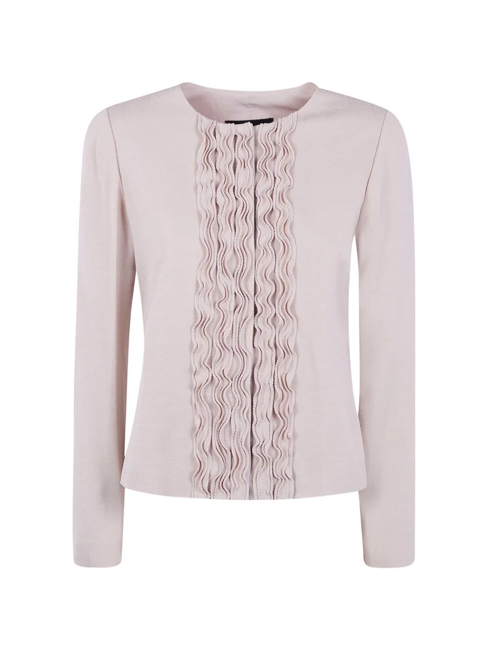 ruffled jacket Highlights - Beige - Ruffled detail - Long sleeves - Round neck Imported Composition Outer: Viscose 100% Lining: Polyester 95%, Elastane 5% Washing instructions Read Manufacturer Guidelines